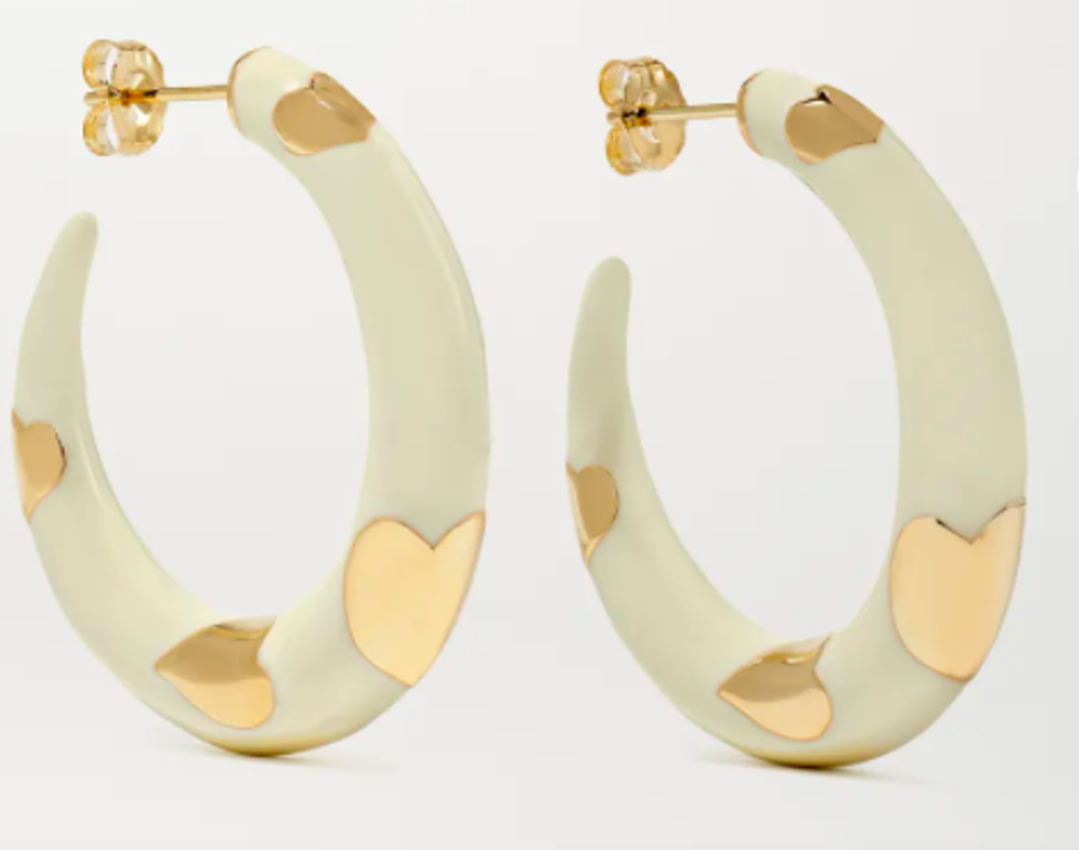 Traditional heart-shaped jewelry on Valentine’s Day isn’t exactly inventive or exciting, but these hoops manage to incorporate the motif without coming off overdone.