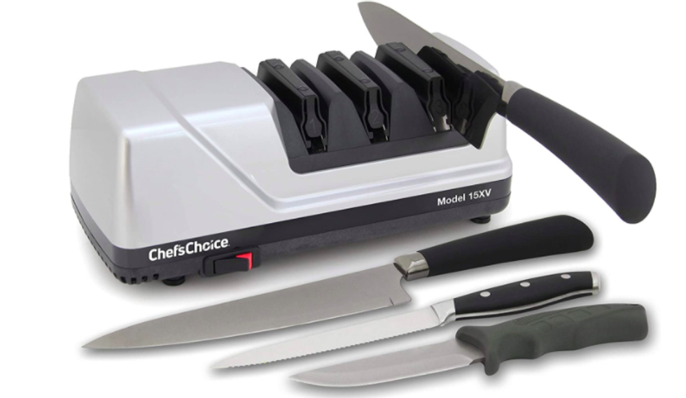 Another option selected through the sheer approval of the masses is the very unique and colorful design of the Redi Edge. The lowest review is a 3 out of 5 stars, and there's only one of those among more than 80 others proving this one does exactly what it says it will and looks stylish while doing so. The compact design means it will fit nicely in your flatware drawer as well, and if you're still not convinced, take for example one longtime fan who writes, "I have been using them for 10 years and it has out sharpened every sharpener out there. A friend of mine, who uses a diamond edge sharpener that was double the cost, asks to use it. I never leave home to fish camp or hunting camp without it."