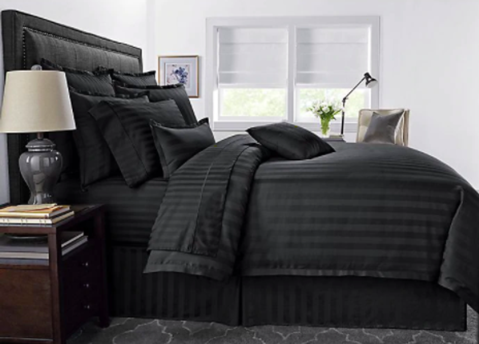 A higher price tag doesn’t always equal a better product, and this 500-thread count comforter set in stunning black damask stripe proves it. Clocking in at well under $150 for a cushy Queen-sized comforter and pillow cases, this Wamsutta piece is constructed with 100% PimaCott cotton with a sateen weave with a smooth, soft-to-the-touch finish.