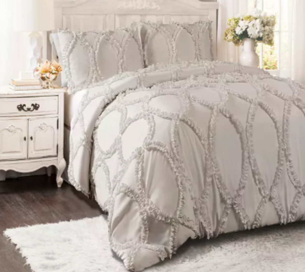Light grey looks rich and goes with everything, but that doesn’t mean it’s bland. This Avon comforter set is rife with ruffles and puffs up like a luscious hotel bed for a whimsical take on a neutral standby. The only downside here is these luxe bedclothes aren’t safe for machine washings, so they may work best in a fancy guest room where your goal is to occasionally impress without the hassle of frequent and expensive visits to the dry cleaner.