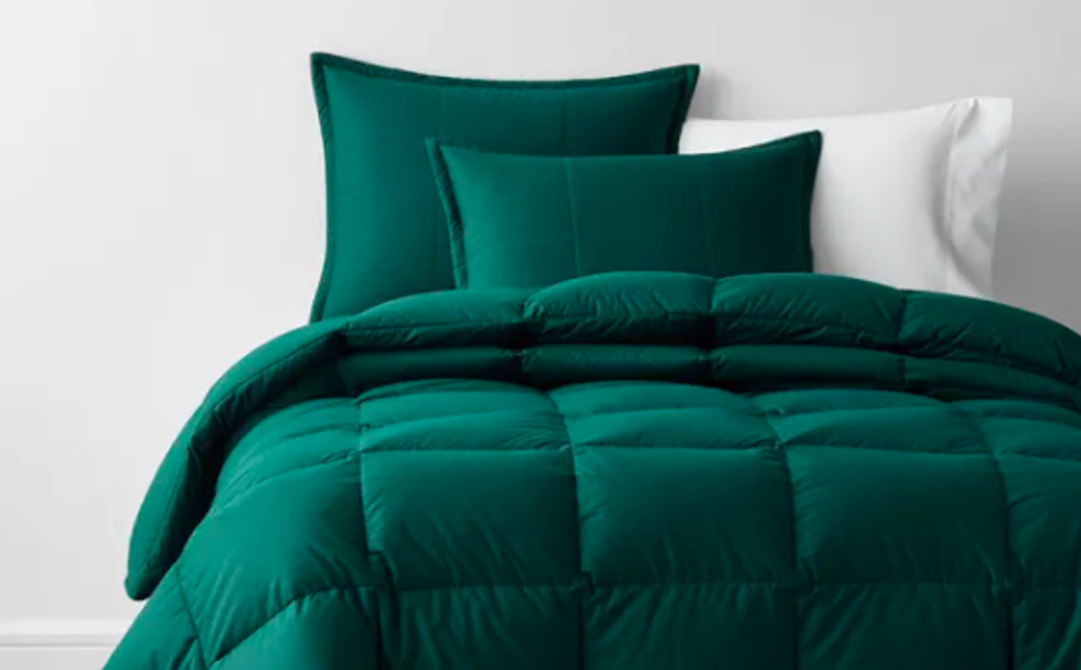 This jewel-toned down comforter ticks all the boxes for us: warm, fluffy, luxuriant, and created in a bold, alluring color that will freshen up the look of any bedroom. The down within is ethically sourced and hypoallergenic, too, so you can rest easier knowing you won’t wake up sneezing or have the guilt of regular down weighing on you.