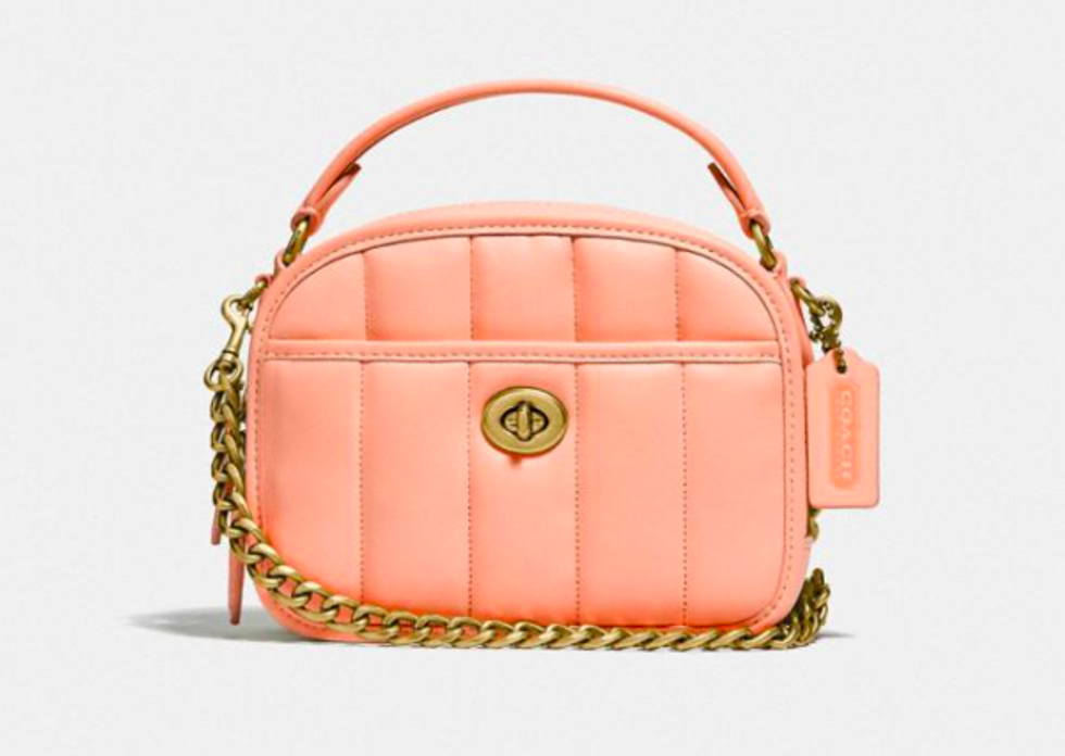 This gorgeous quilted bag in faded blush is part of a legacy collection in which Coach has pulled out archival shapes and styles to re-introduce their classic New York look to the world. We love the compact, structured shape and brass detailing on this particular design, one originally introduced in 1997–perfectly in line with the throwback fashions we’re seeing everywhere right now.
