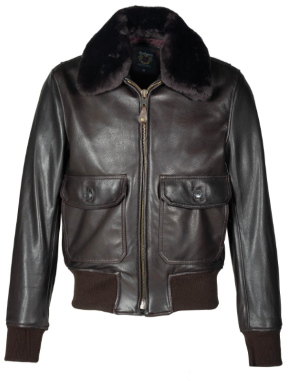 Schott NYC Naked Cowhide G-1 Flight Jacket with Detachable Mouton Collar