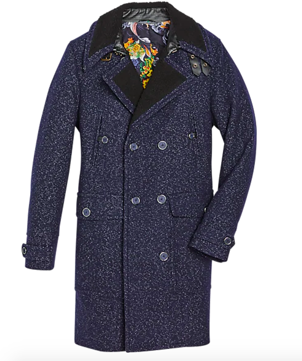 Men who want to step just outside the box without going totally madcap fashion-wise can appreciate this interesting speckled number with an exaggerated collar and dazzling floral liner sure to impress anyone who catches a glimpse. Perfect for finishing off an elegant evening look for date night or just a fancy stroll, the bit of stretch added in makes for a proper fit and a hint of give, so layer accordingly and live it up with panache and comfort.