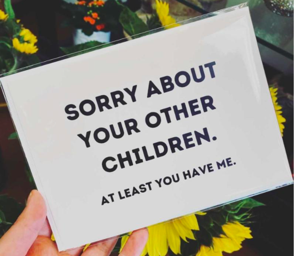 If your relationship with your mom is less precious and more sarcastic, this is the card to give her. While the outside is hilarious, the inside is blank so you’ll have plenty of room to write something heartfelt and sentimental after she gets a kick out of the initial message.