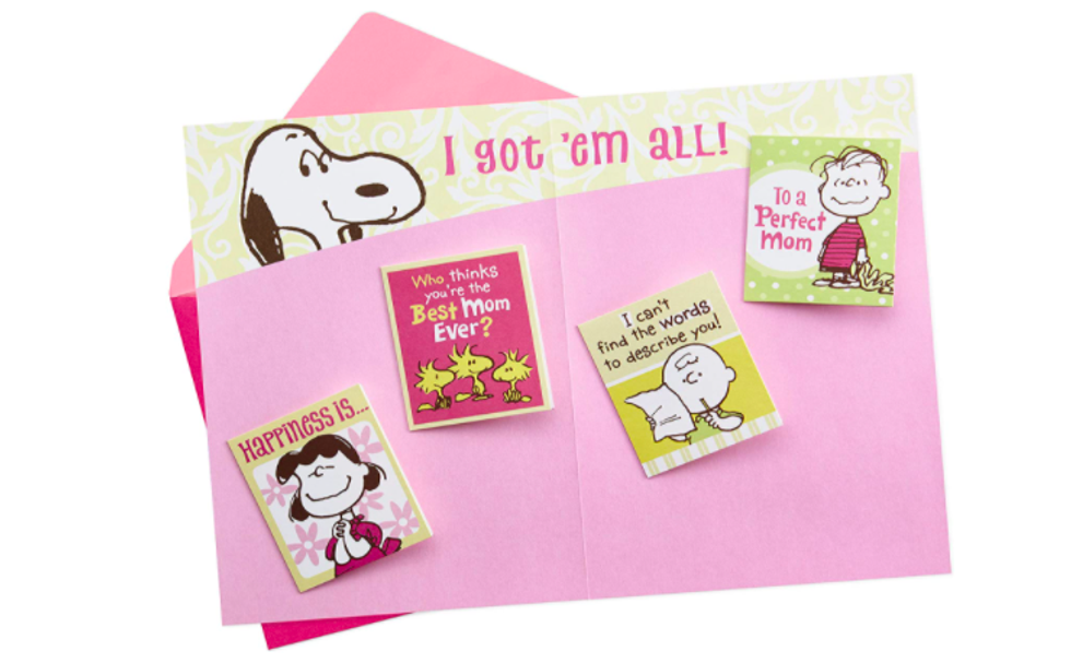 Considering their historic run as beloved cartoon icons since their introduction in 1947, it’s likely your mom (and even grandma) have some fun memories tied to the Peanuts characters. Celebrate those ties with a cute, modern card that combines several tiny cards into one, all featuring the adorable characters and phrases that let your mom know how much you love her.