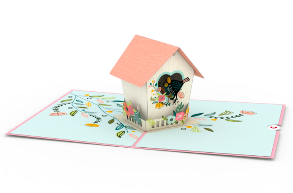 It may look like a simple pink card on the outside, but open it up and see a magnificent birdhouse spring to life with this stunning card, another from our favorites in the game, Lovepop.