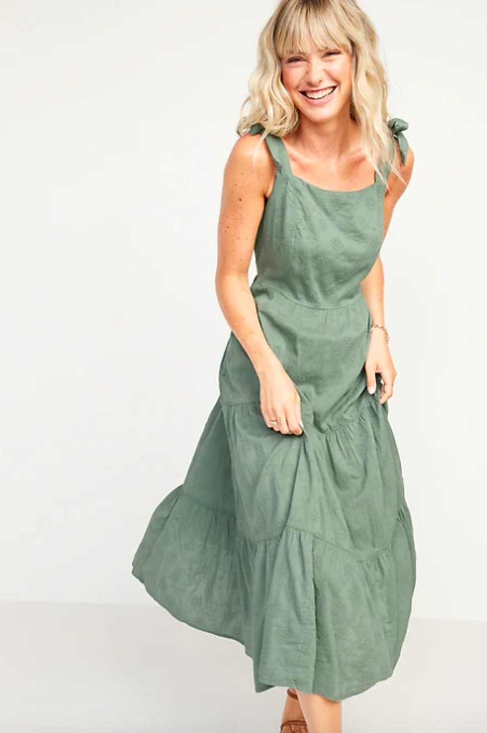 Fit & Flare Sleeveless Tie-Shoulder Floral-Embroidered Maxi Swing Dress for Women