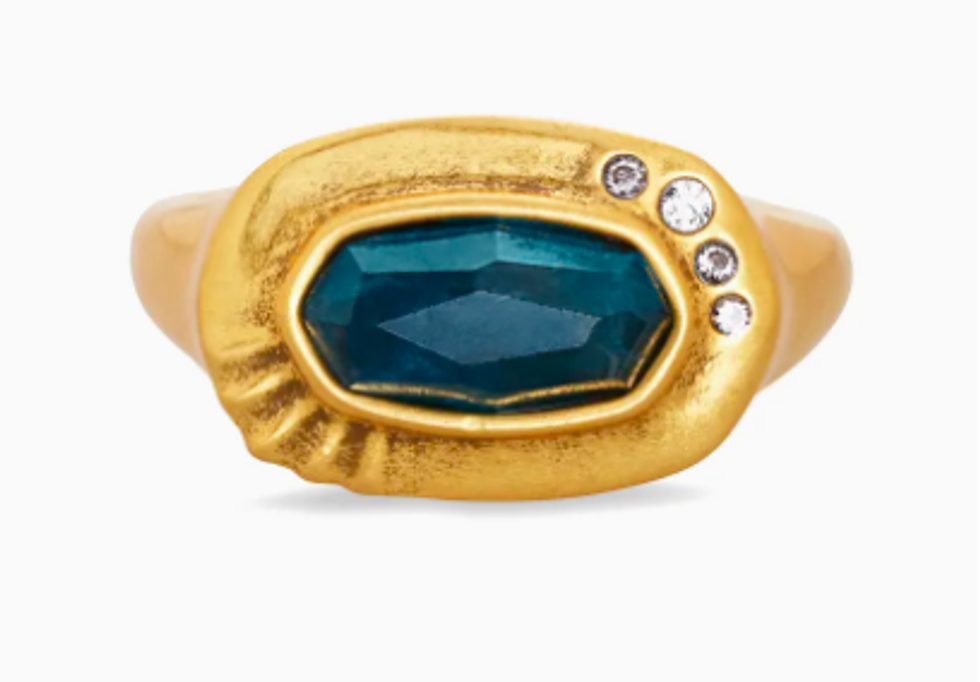 Offering both fine options and more budget-friendly pieces, Kendra Scott Jewelry aims to “thoughtfully and joyfully connect through beautiful jewelry that gives back to the causes and people you care about most.” All pieces are designed in the company’s Austin, TX based studio and a portion of their annual proceeds is donated to charities that focus on empowering women and children. Browse Kendra’s Picks to see an up-to-date look into what’s trending now, and just look at the Anna Vintage Gold Band Ring In Teal Apatite below that you can get for under $50!