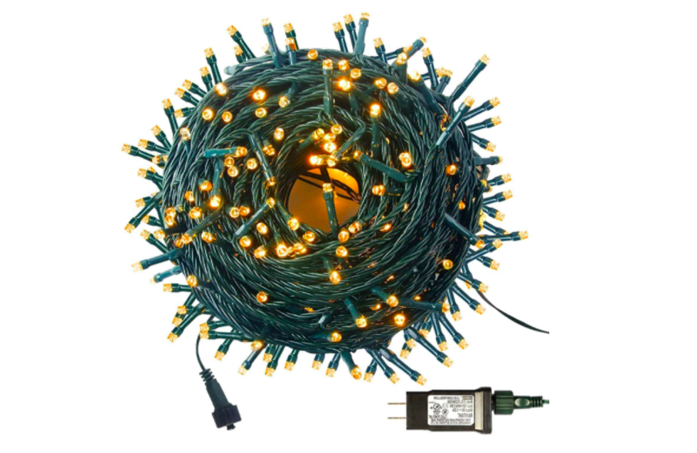 You’ll get 300 LED lights that twinkle and shine in eight different modes, all on a 100 foot strand that can be connected to three others of its kind for a light show to illuminate your whole home. A high Ip65 waterproof rank helps these lights withstand any type of harsh weather, and they come with a memory function so you don’t have to reset after every use.