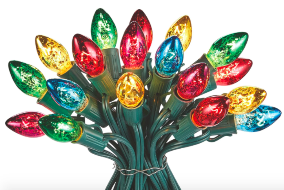 For a similar vintage effect as the bulbs above but with the added glimmer of mercury glass, pick up this 20-count string from Noma. Each strand has a plug at each end so you can conveniently string up to four lengths together.