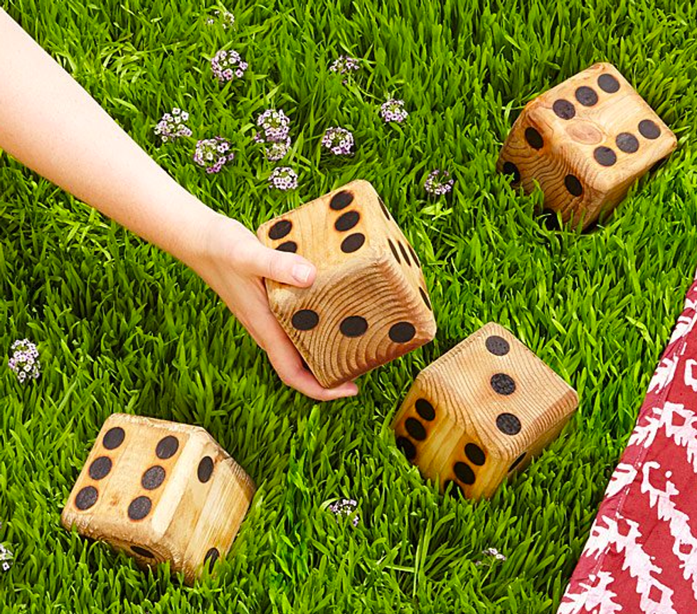 At 3.5 inches each, the six dice included here are big enough to roll around in the grass with ease, and the jute carrying bag makes them ultra-portable so the fun can come with you anywhere.