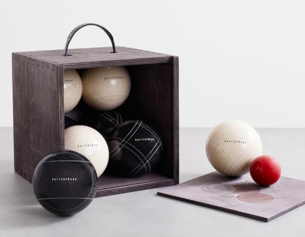 This one from Pottery Barn is a tournament-grade set featuring solid, one-piece balls crafted for precision roundness and balance. The rich mahogany storage box keeps everything safely stowed and ready for you to take to the park, on vacation, or anywhere else you want to break out a game.