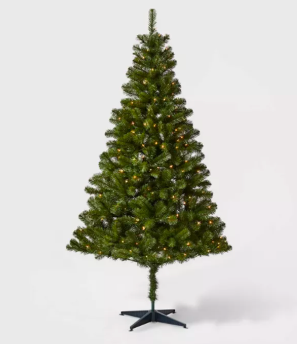 For a budget-friendly option, try this $60 tree from Target that comes with 250 lights and weighs just 10 pounds. Assembly and storage is a breeze with no tools needed, and the lights provide a constant warm glow.