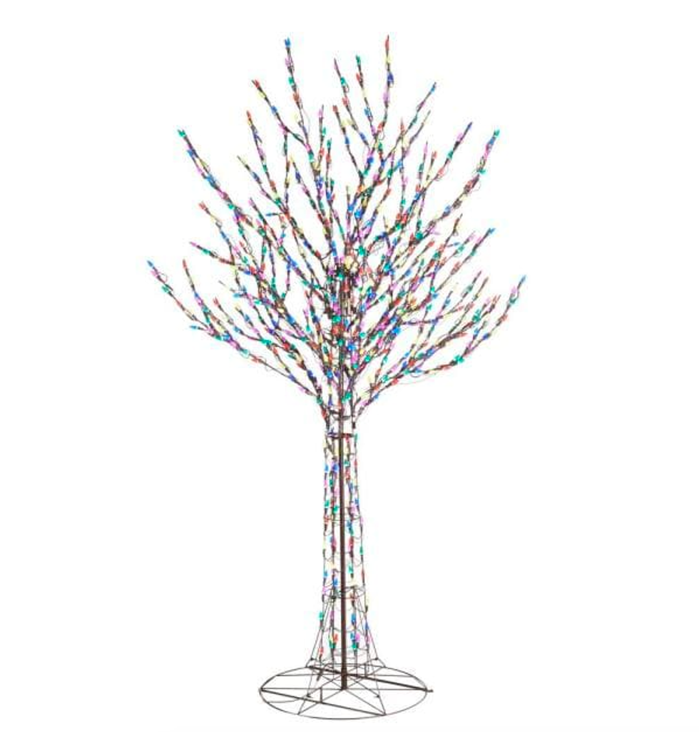 Take a less traditional route with this oversized bare-branch tree appropriate for indoor or outdoor use. It has over 700 multicolored lights included and a collapsable base for easy setup.