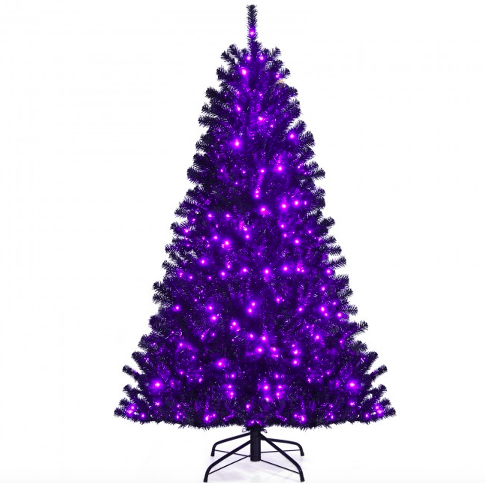 Black Artificial Christmas Halloween Tree with Purple LED Lights