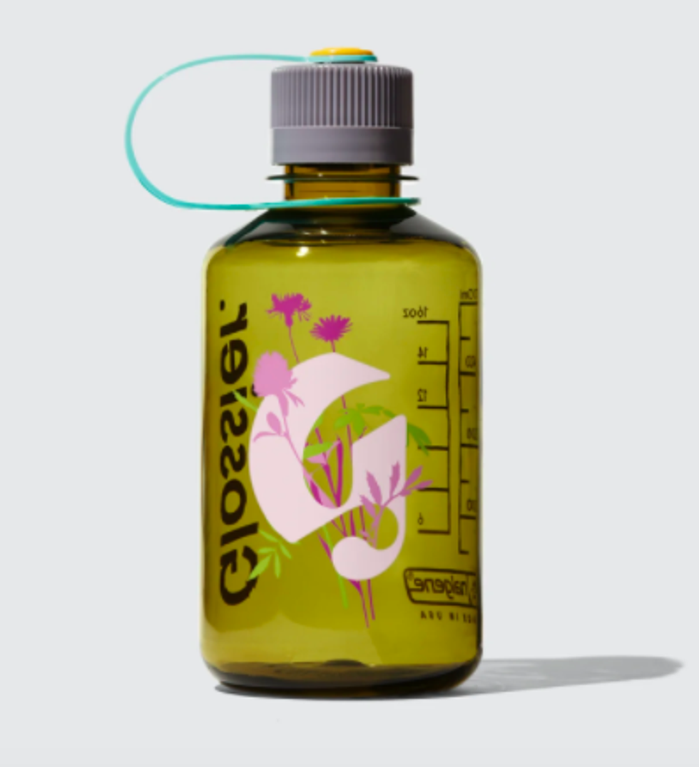 “Originally made for Glossier Seattle, our Nalgene Water Bottle quickly became a fan favorite,” the company says, “so we decided to bring it back for good! We love it for a bunch of reasons: the just-right 16 oz. size, the narrow mouth (easy drinking, less spilling), and handy loop top.”