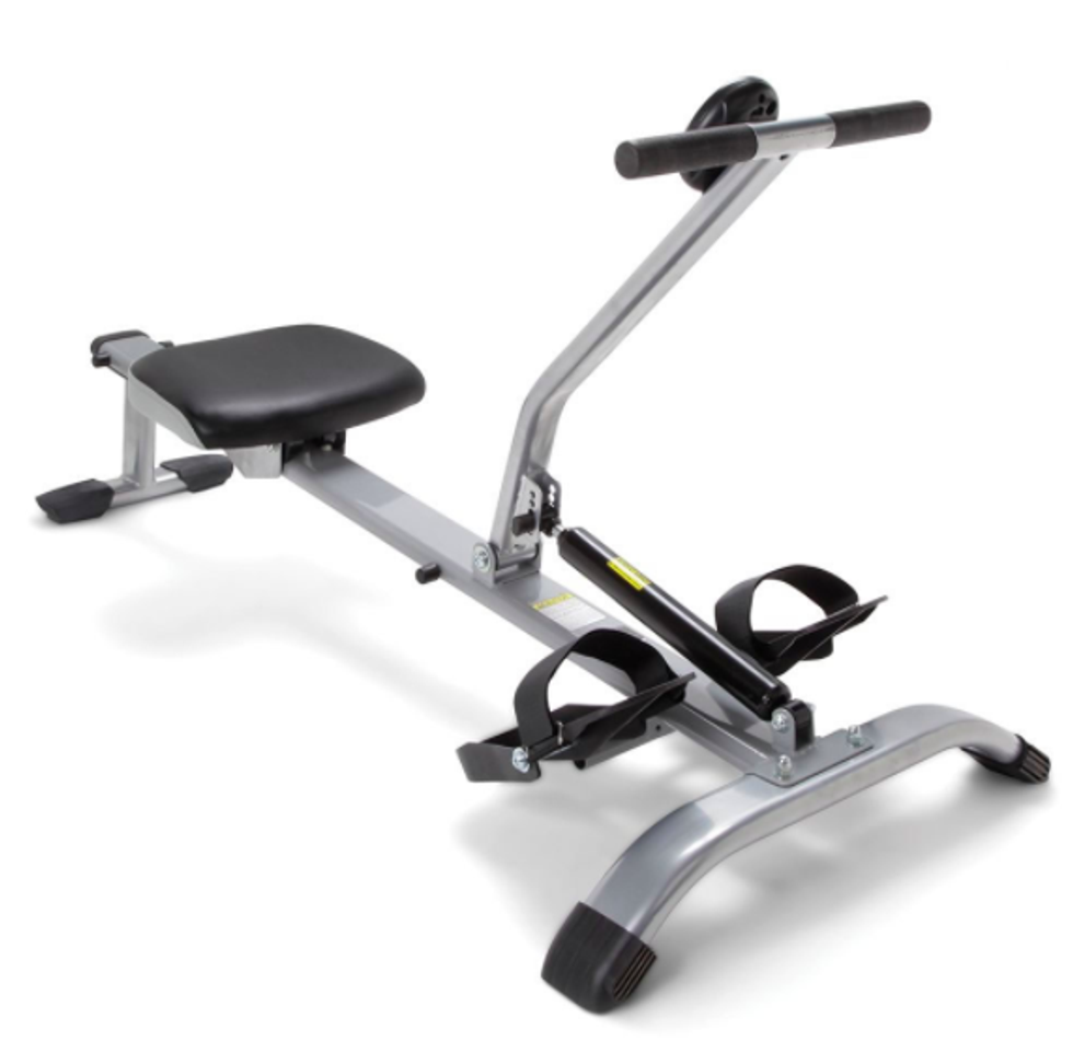 This compact, affordable rower (under $200!) promises a full body workout using smooth hydraulics with five resistance levels, padded handlebars for comfort, pivoting foot pedals for smooth motion, and solid steel frame that holds steady while you work. While sturdy, the machine weighs only 27 pounds so you'll be able to transport it easily from room to room as needed.