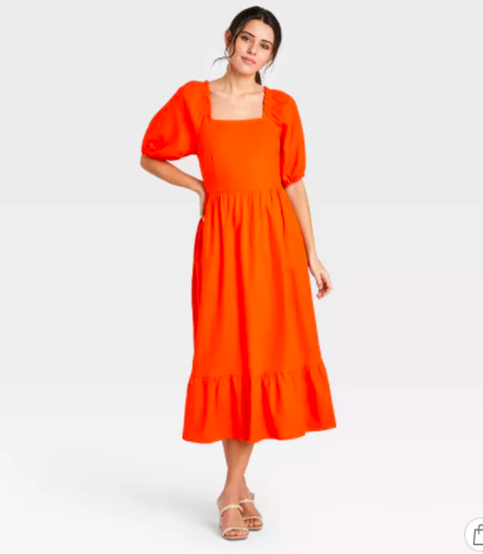The bright, rich orange hue and puff sleeves are perfectly on trend, and the sexy tie in the back lets you show off just a hint of skin without feeling overexposed.