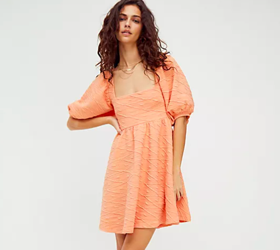 Puff sleeves again? Absolutely, especially when done up in this dreamy and creamy grapefruit color.