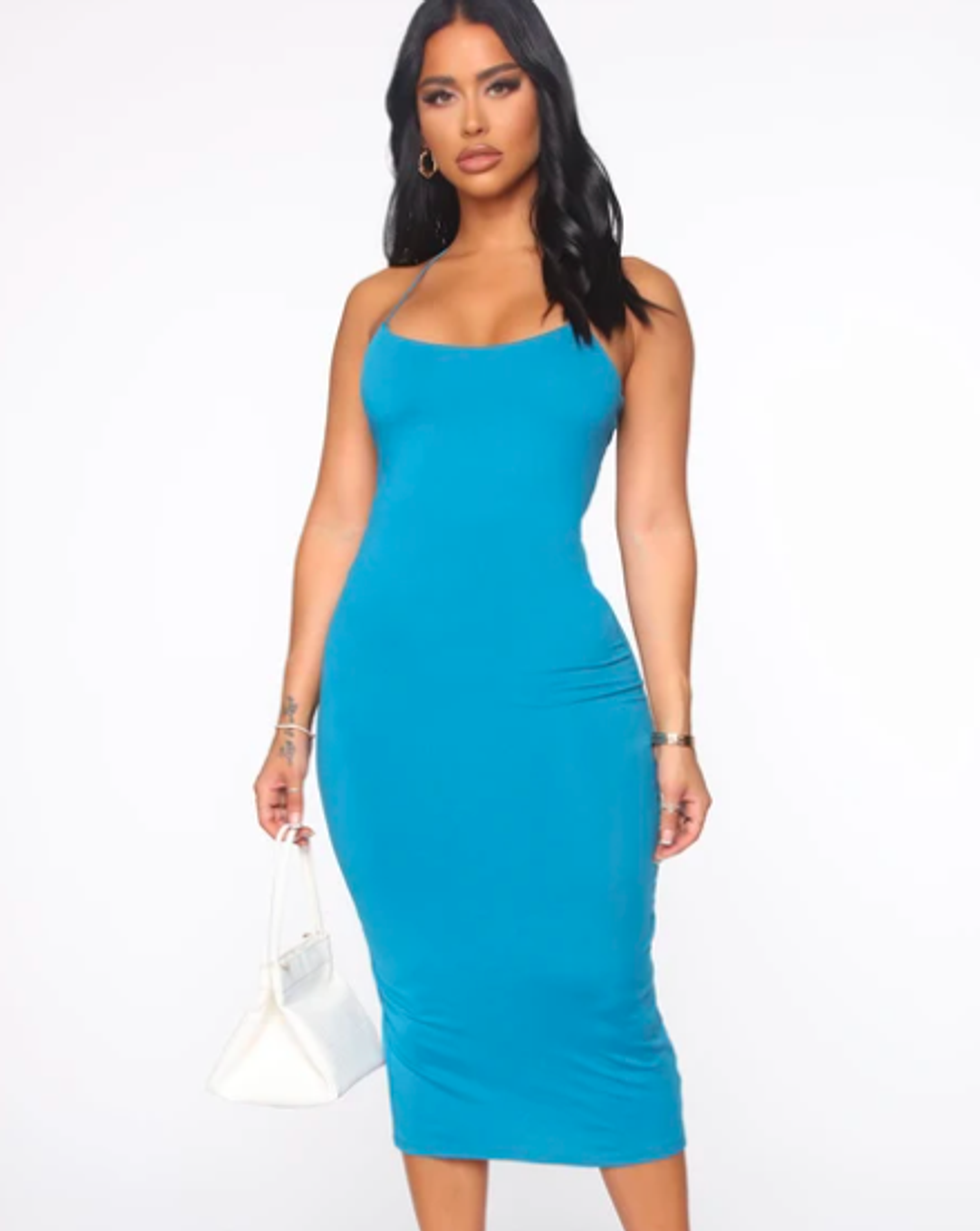 Imagine slinking into dinner with this body-hugging number showing off every curve you have! At under $20, buy it in black, too, and drive your future dates wild.