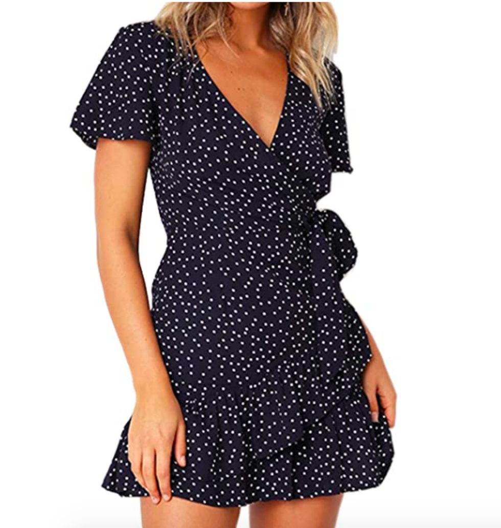 Polka dots are eternal, as is the wrap dress shape. Combine both with this flirty, ruffled number and turn heads as you float down the street.