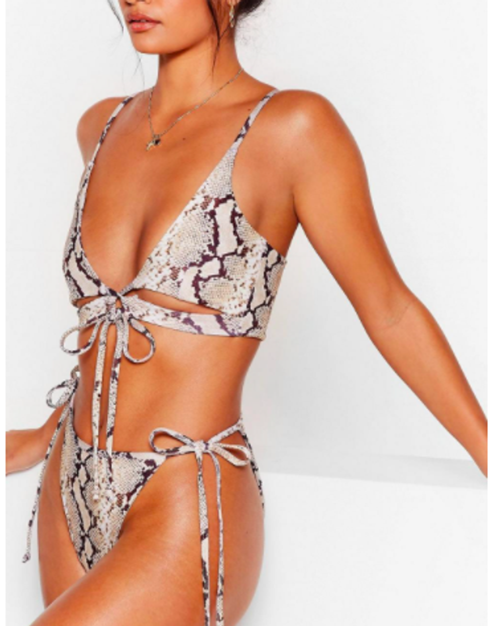 Animal print is classic, but tiger is less predictable than leopard and looks great on this sexy, itty bitty two-piece from Lulu’s. The pieces are sold separately so make sure to grab the bottoms here.