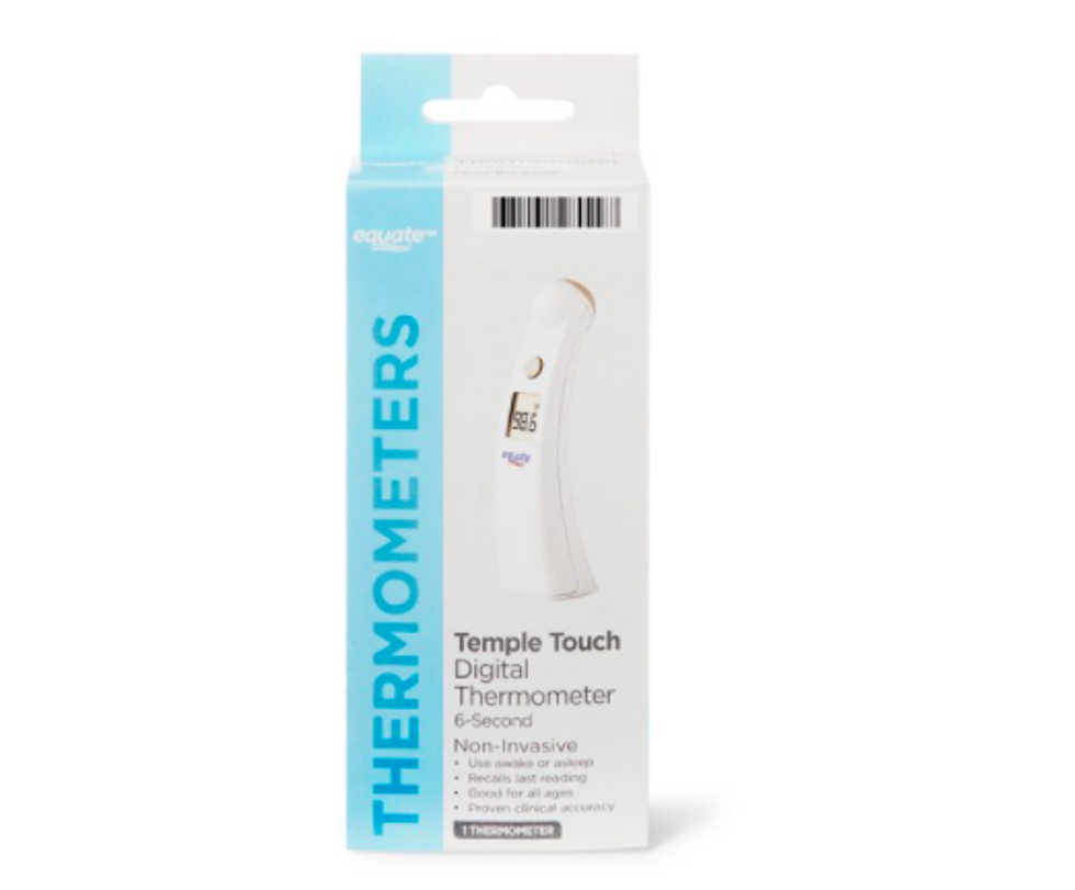 Coming in even cheaper is a house brand of Walmart’s, the Equate Temple Touch thermometer. It takes a different approach by being placed against the side of the head and using a unique sensor to “sample the heat flowing from the blood vessels to the skin surface and accurately translates it to the body temperature.” Its proven clinical accuracy and very affordable price make it a must-have for any family’s medicine cabinet.