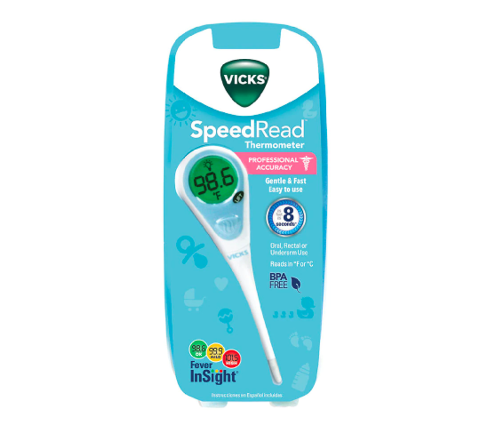 If you’re not yet used to the no-touch method and want something a bit more old school that you can trust, CVS has a popular option by Kinsa that takes less than eight seconds and can be used orally, rectally, or under the arm. It’s pediatrician-recommended and FDA-cleared for accuracy, comes with an app that offers suggestions on which steps to take once your temperature is recorded, and lets you keep each individual family member’s information stored so you’ll have it in your pocket should a trip to the doctor’s office be in order.