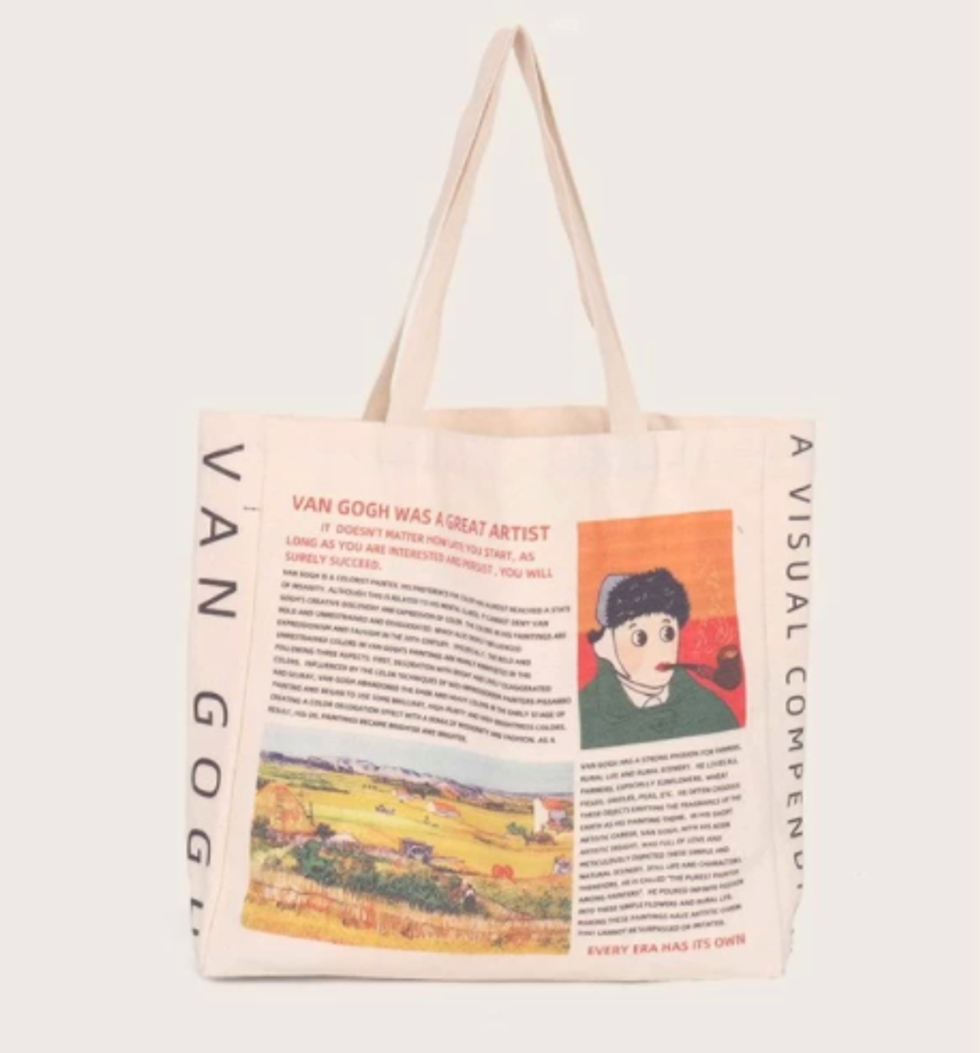 Art-inspired and keyed into the ongoing newsprint trend, this cheap and easy tote from Shein is a great addition to any bag collection and looks more stylish that the regular plastic-y things they sell for a dollar at the grocery store. Reviewers love the generous sizing and note Van Gogh's cartoonish face is very cute and funny, and thus will bring a little smile to your day with each use.