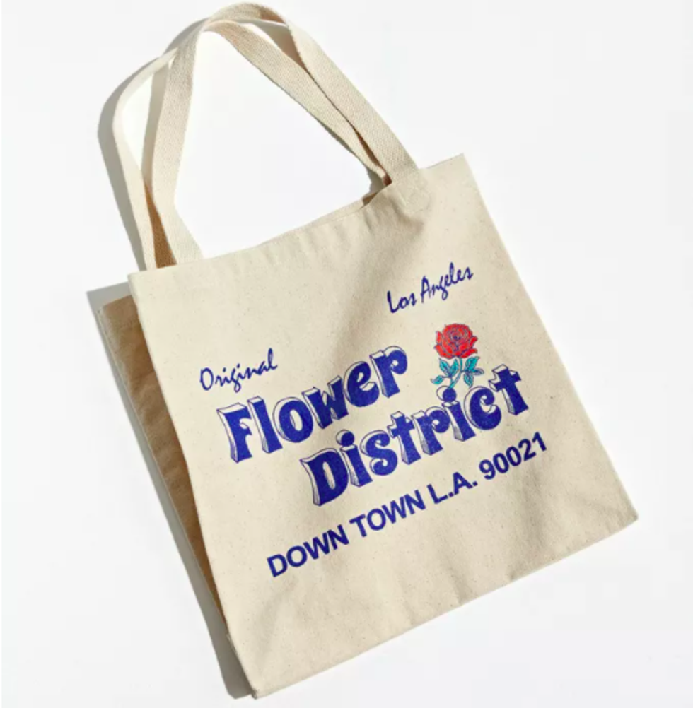 Hip, retro-looking, and sunny as all get out, this Flower District Tote Bag calls up imagery from the 1960s (very in right now) and is perfect for carting home your very own bouquet score at a weekend market. The unique and roomy structure gives it a bit more versatility than your average flimsy canvas bag.