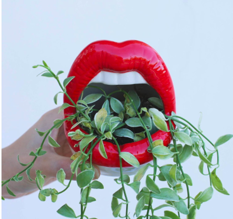 It’s cute, cheeky, and just a little sexy, and it will bring instant style to any plant stand or windowsill in your home. Try one of each color–pink and red–for bookend mouthpieces spilling over with vines.