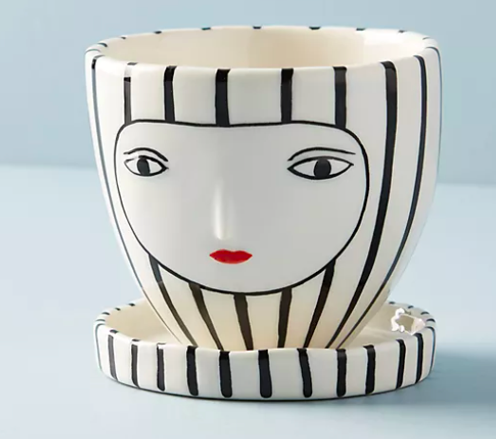 Speaking of faces on pots that we just can’t pass up, this Anthropologie cutie is rooting deep into our hearts with its clean lines and color scheme, simple yet adorable construction, and subtle grin that rivals that of the Mona Lisa herself.