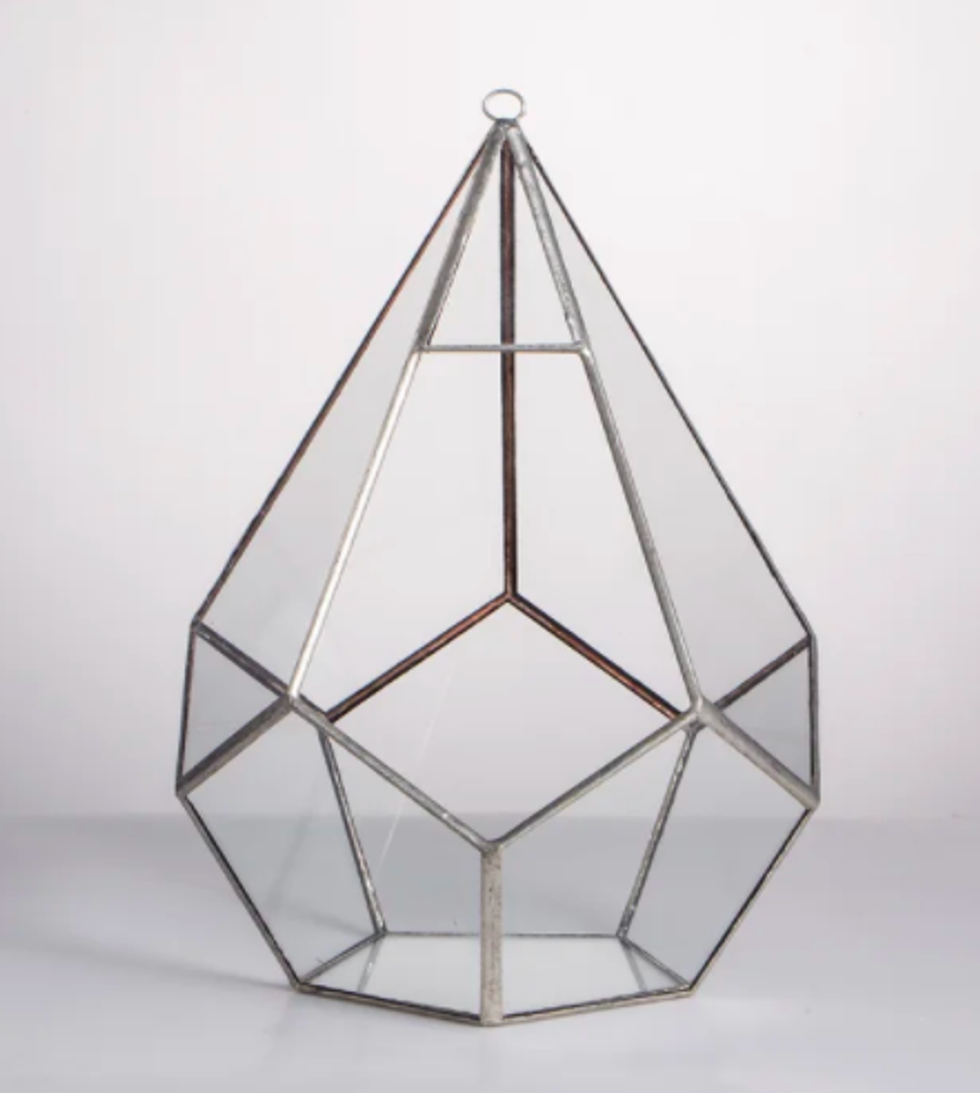 Another terrarium we love is this geometric glass house that’s perfect for planting miniature vegetables, succulents, air plants, moss, cacti and more.