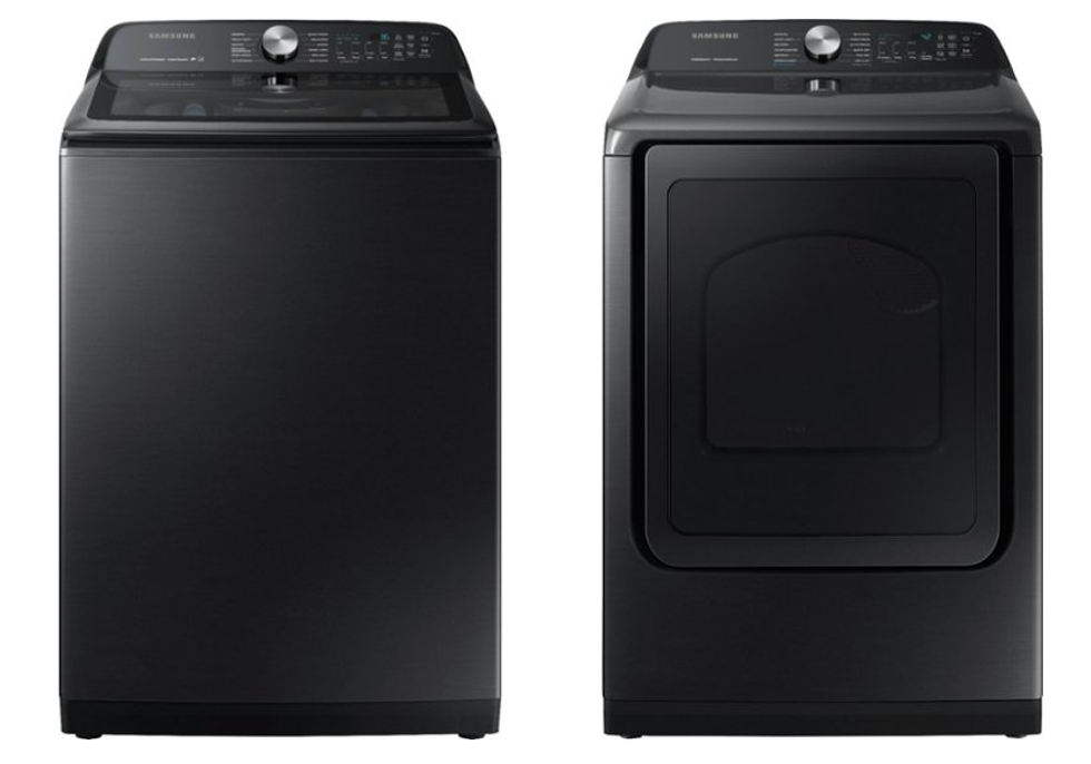 Samsung-5.0 Cu. Ft. 12-Cycle Fingerprint Resistant Top-Loading Washer-Black Stainless Steel - Fingerprint-Resistant Black Stainless Steel and 7.4 Cu. Ft. 12-Cycle Fingerprint Resistant Gas Dryer with Steam