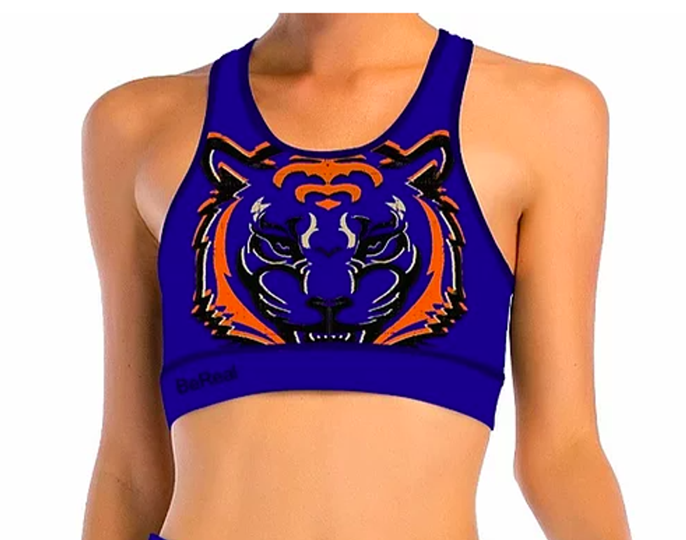 Featuring a ferocious tiger graphic and stunning sapphire color, this sports bra is a great option for those who like to show a little skin while working out but also need support.