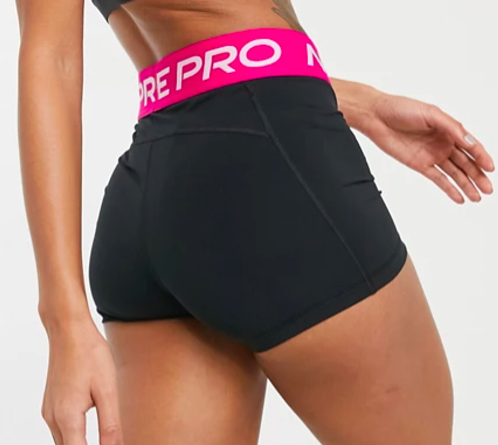 Nike Training Pro 365 3inch shorts with pink waistband in black