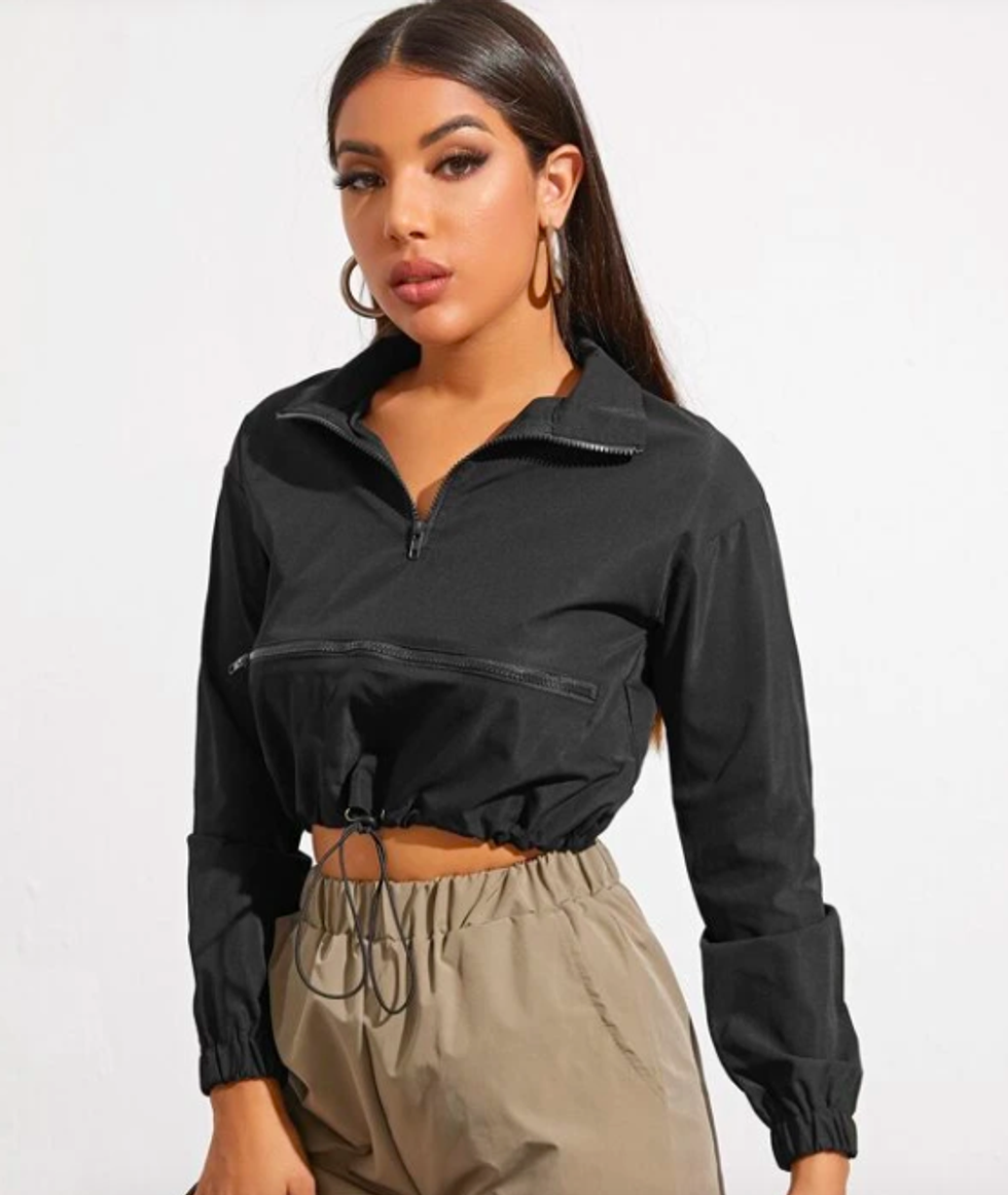 Zipper Half Placket Drawstring Hem Wind Jacket