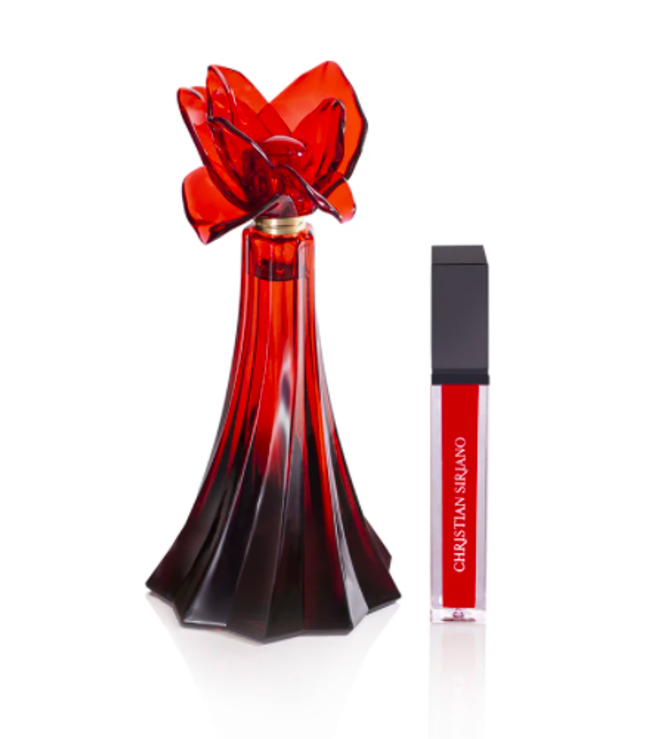 Reminiscent of Billy Porter’s unforgettable 2019 tuxedo gown, Siriano’s bottle for new fragrance Ooh La Rouge is structured to impress with a sweeping wide bottom and perfect crystalline rose perched lightly on top.