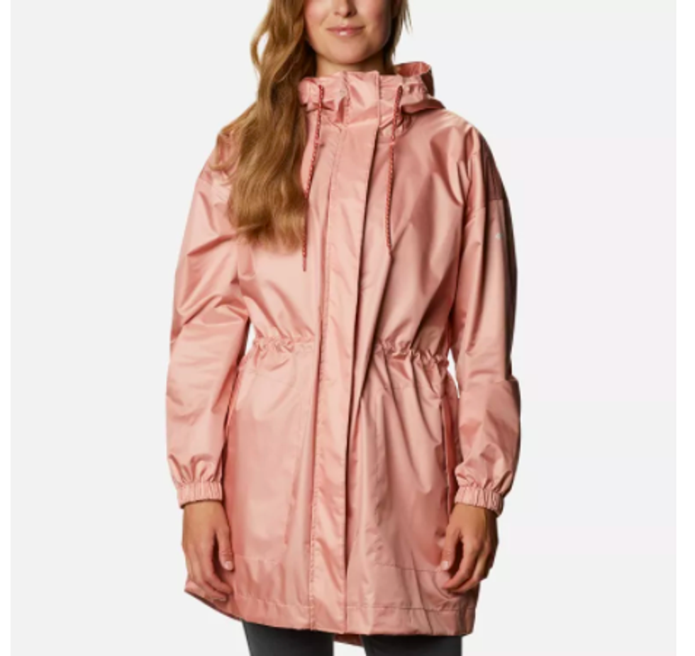 Polka dots never go out of style, especially when they’re splashed all over an adorable spring jacket in varying sizes with pops of color to set them off. This jacket is lightweight with waterproof taped seams to keep out the droplets and elastic cuffs for further protection. A fishtail hem is universally flattering, and you can wash it in your machine at home–just make sure to hang-dry.