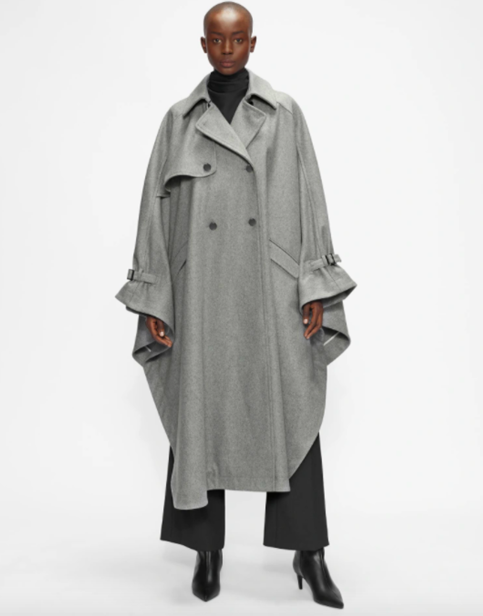For some of us, capes are the peak of fashion. You get to look like a stylish superhero, your arms are to move around unrestricted, and the swoosh effect you get when walking–it’s just so powerful a look! Try this muted gray version from Ted Baker for the ultimate winter statement piece.