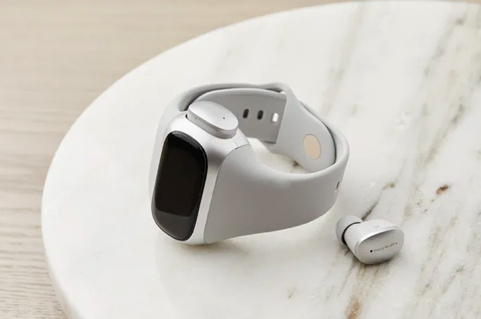 Wearbuds by Airpower combine both of these techniques and are a genius way to keep track of your trusty earbuds and charge them without a separate device while resting snugly inside a stylish, modern timepiece that tracks your fitness and encourages you to move more. Scratchproof and fingerprint-resistant glass with matte metals make this as beautiful to wear as it is convenient, and the touchscreen has gesture control so you can quickly skip through songs and scroll through the other features.
