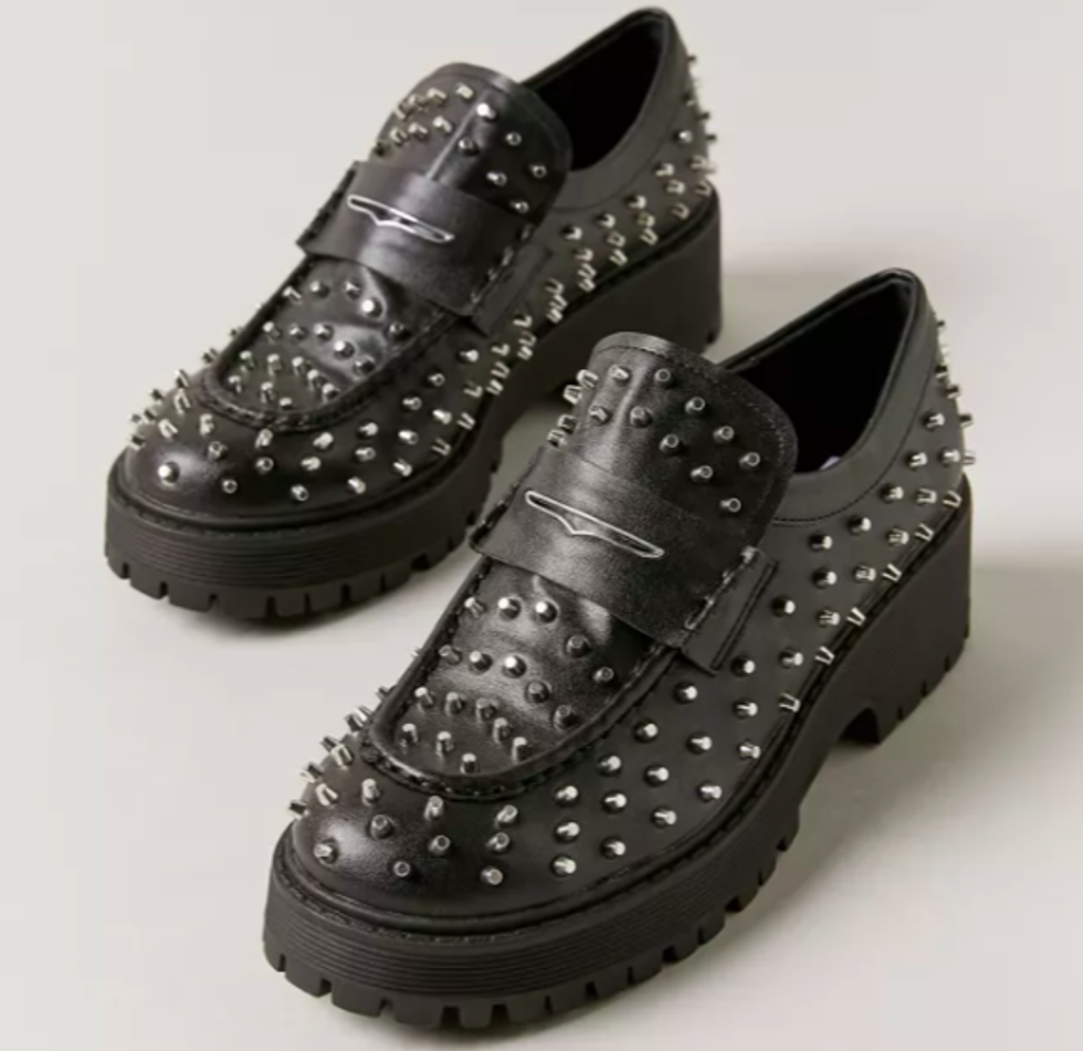 Loafers are having a bit of a moment in women’s clothing, and it’s easy to pair them with ultra-femme looks to give a bit of masculine edge as to avoid saccharine sweetness. However, you can step that edge up tenfold by adding black leather and studs (a universal truth), so why not throw on these impeccable Steve Maddens made for the rock stars who need comfort and just a little lift in their lives? Add some knee socks and a pleated skirt and you have the perfect prep-school dropout look.