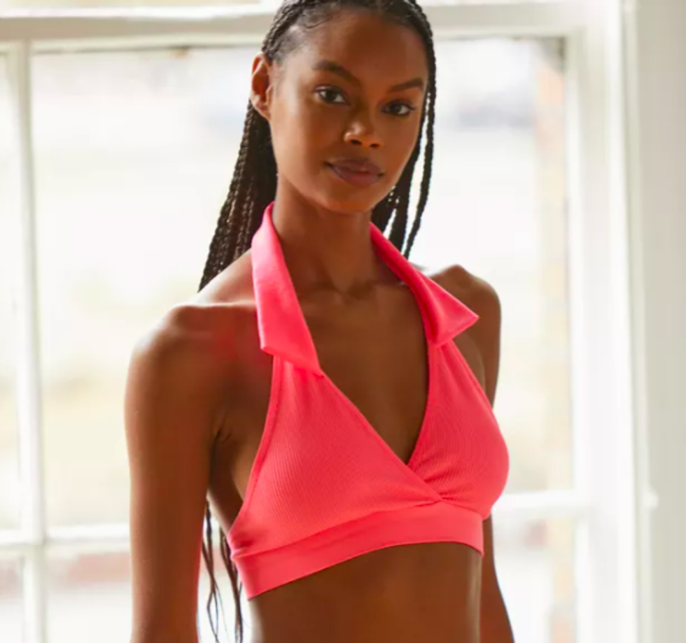 Did someone say disco glam? The 70s are alive once more with this amazing collared bra top, and we can’t get enough of its delicious bright pink color. If you prefer your crop tops a bit more understated, click through to see it in lovely shades of white, pastel purple, and of course basic black, too.