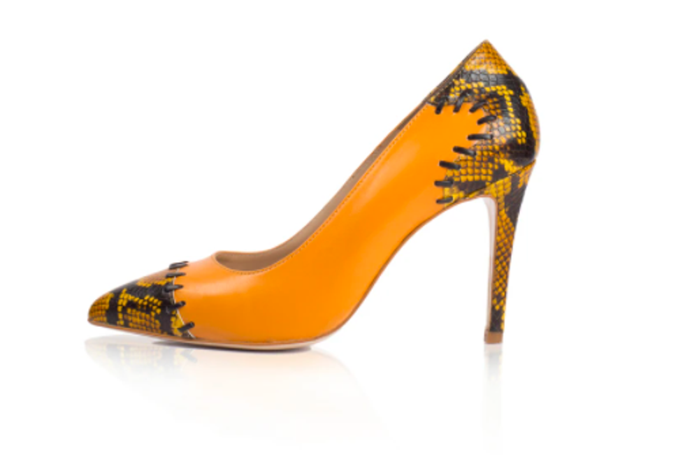 Buttery napa yellow leather with bright snakeskin toe and heel caps make these stunning stilettos fresh, innovative, and the focal point of any outfit you pair them with. They’re certainly not for the faint of heart (or heel-phobics) but wear these for a huge boost of confidence and prepare to to receive a thousand compliments.