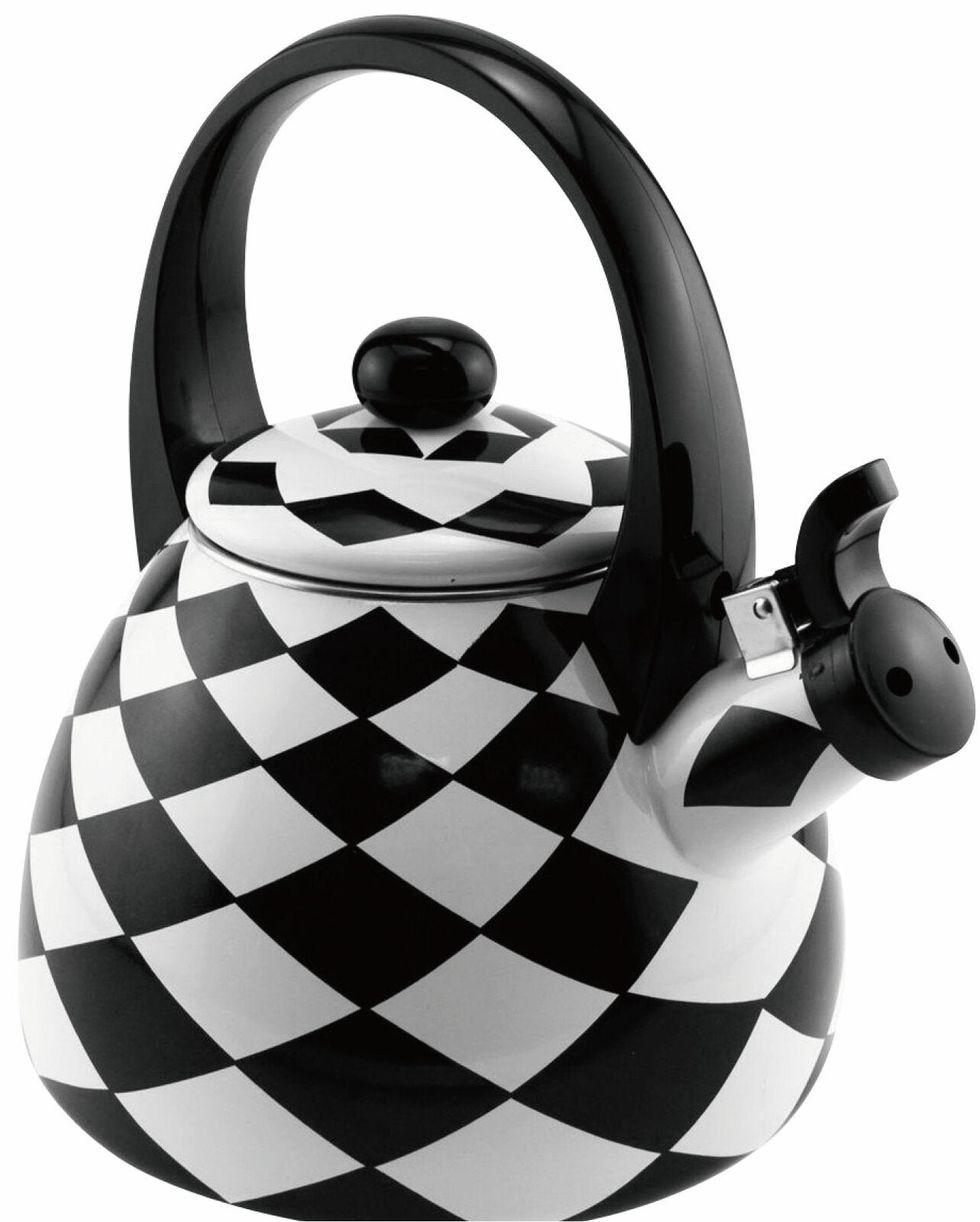 If bold and graphic is your cup of tea, brew it up in this black and white diamond patterned stunner and let visitors revel in the artistic optical feast on your stovetop.