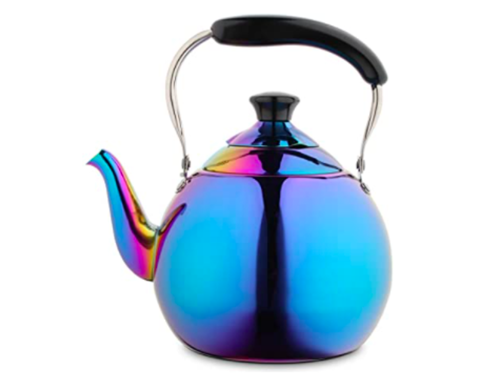 The oil slick look of this kettle is perfect for the funky kitchen, or maybe a college student going away for their first year of school. It looks fresh and youthful, almost hypnotic in appearance, and its bulbous shape helps it heat water more quickly than most.