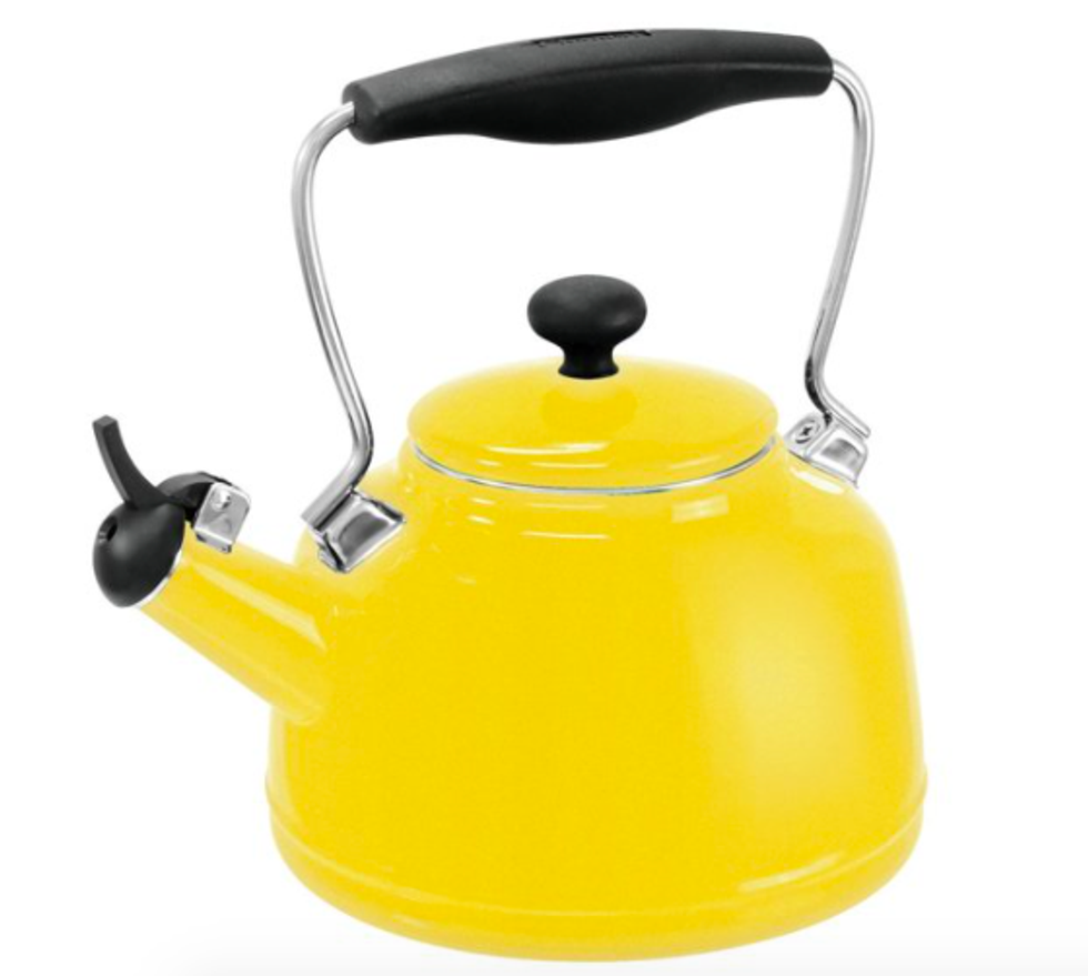 For something sunny and bright without looking too cartoonish, this vintage-style steel kettle hits the spot. The body is composed of one solid piece, so you also get the added benefit of avoiding rust.