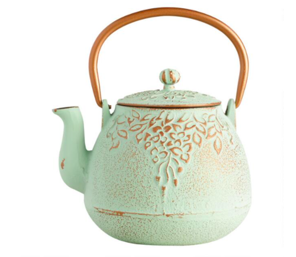 Embsossed cast iron is heavy, beautiful, and looks great on any counter or stovetop. It comes with a removable tea infuser as well, and the under-$30 is hard to believe when you consider the look and quality of this piece.