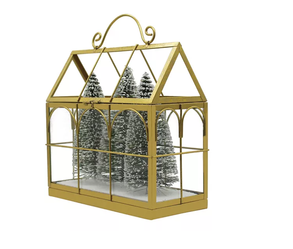 The gold tone iron gives this lantern-terrarium hybrid a rich finish, and the LED lights inside add a warm glow to your tabletop setup. It also runs on batteries so you don't have to mess with any unsightly chords!